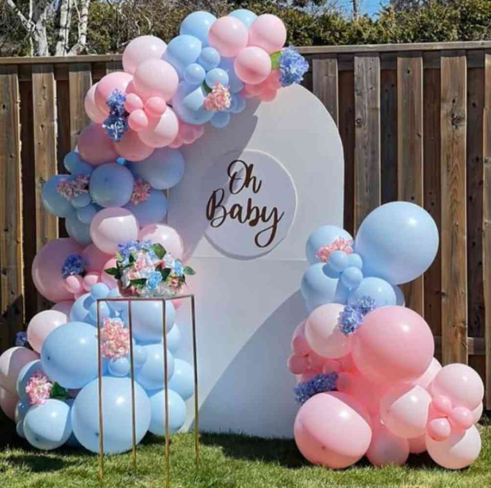 Modern Pastel Blue And Pink Oh Baby Baby Shower Balloon Backdrop Decor premium event decor in Noida, Ghaziabad & Greater Noida